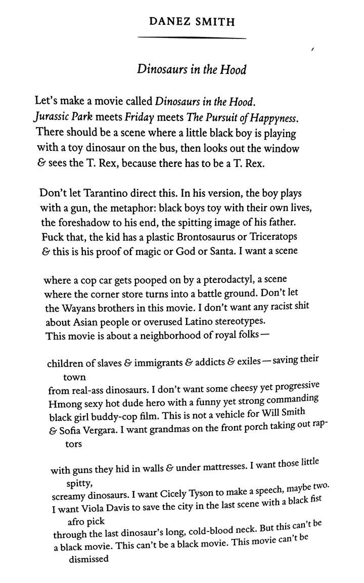 On the night the grand jury's decision not to indict Darren Wilson was made public, I was reading December's issue of Poetry Magazine and happened to read Dinosaurs in the Hood by Danez Smith: